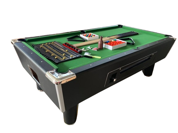 | 8.Accessories:2pcs cues,1set balls,2chalks,1brush,1triangle 50pcs coins each table |