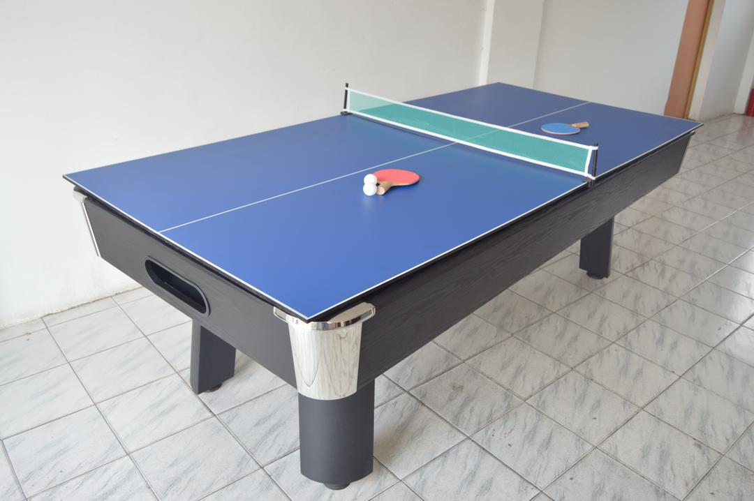 Table Size: 8ft Material: MDF with Black PVC laminated Playfield: 18mm MDF with PVC laminated Rubber: 818 Table Cloth: 360g single-sided cloth Green Apron Corner: Zinc alloy chromed |End Apron: chromed Leg levelers: metal chromed | Dia: 130mm End Apron: chromed Leg levelers: metal chromed | Dia: 130mm Accessories: a) 1 pc brush, b) 2 pcs triangle, c) 4 pcs cues, d) 2 pcs chalk, e) 1 set of pool ball, f) 1 pc jigger(cross)cue, g) 1 pc cue rack, h) 1 pc snooker tripod, i) 1 set of Kelly Balls sets, j) 1 pc score board, k) 1 pc table cover, l) 2 set balls. Packing: Half K/D with assembly instruction Carton: Mail order standard