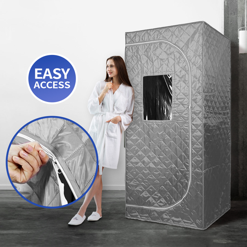 Tent size: 800*800*1600MM INCLUDING •Tub tent •Fiber tube •Carbon infrared heating panel -300W*4 pieces -30W*1 piece feet heating pad -25W*1 piece LED light •Digital sauna time/temp controller •Connecting line •Absorbent pad •Foldable chair